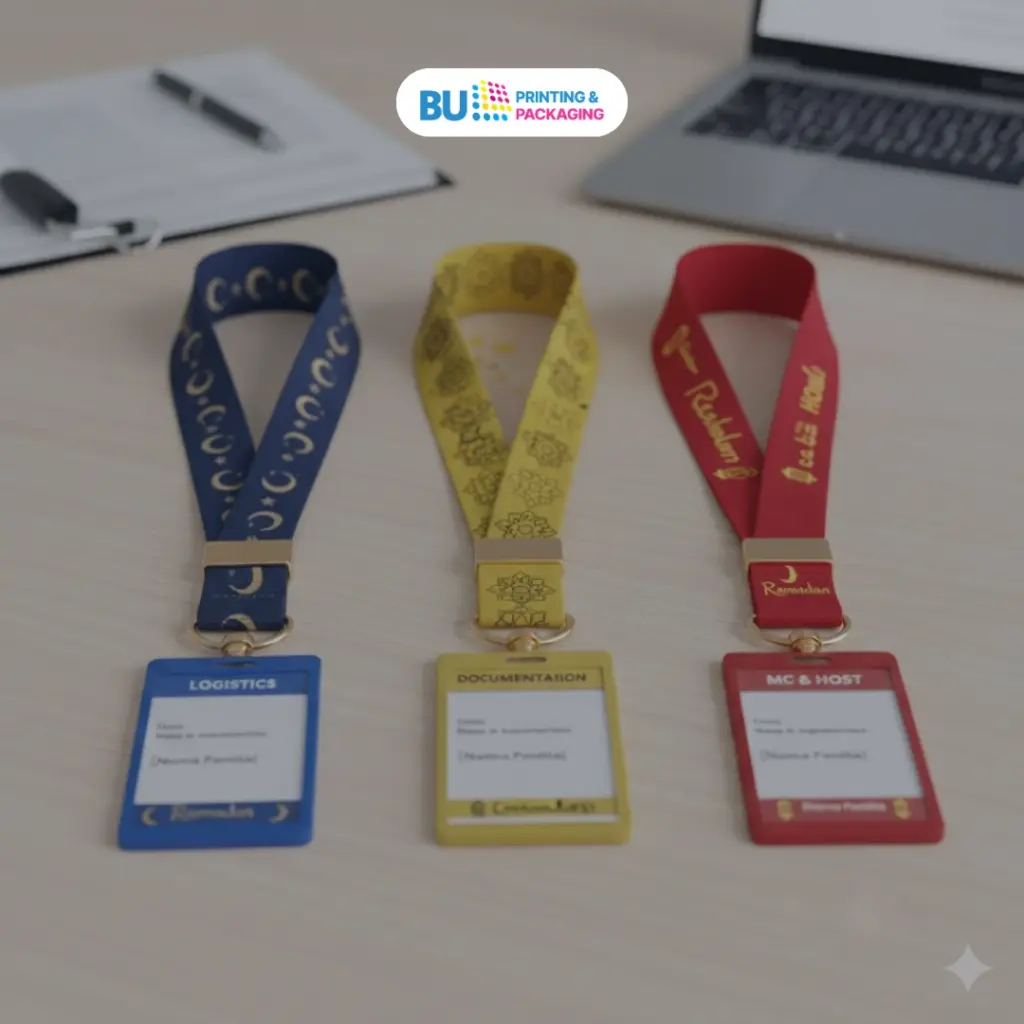 Jika Anda membutuhkan lanyard panitia Ramadhan dengan ukuran, warna, dan desain yang bisa disesuaikan, layanan BU Digital dari BU Printing & Packaging menyediakan cetak lanyard custom sesuai kebutuhan acara. Mulai dari pemilihan bahan, lebar tali, hingga detail logo dan pembagian warna divisi dapat disesuaikan agar identitas panitia terlihat jelas selama kegiatan Ramadhan berlangsung.